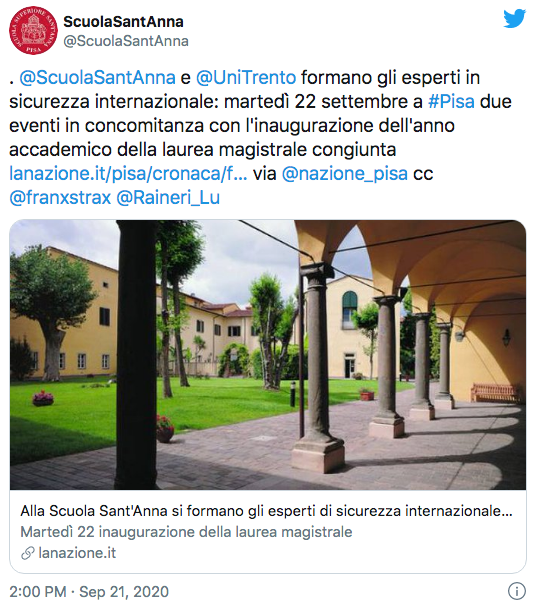 Taking cue from the current situation, the conference “African Crossroads: Security Challenges and Partnership Opportunities” took place in Pisa on the 22ndof September 2020. The event coincided with the opening ceremony of the Master in International Security Studies– jointly offered by the Sant’Anna School of Advanced Studies and the School of International Studies of the University of Trento.