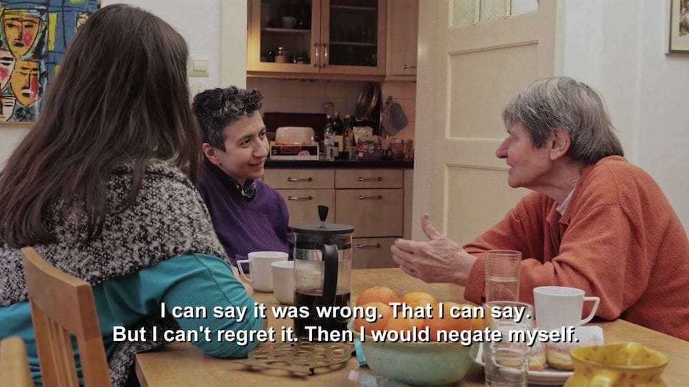 Kathleen starts her journey with strong convictions, which after every dialogic encounter get challenged in different ways by the people she enters into dialogue with. They question her motivations, beliefs, and expectations. As the story gets thicker and layered and keeps being populated with different voices and perspectives, Kathleen has to deal with different type of responses and non-responses to her quest, holding space, and being ready for what comes, painful discomfort included. Of the two people directly sentenced for their involvement in the murder of her brother, Birgit Hogefeld writes back to Kathleen, acknowledging her pain, but refusing to meet in person, whereas Eva Haule never responds. A point comes when Kathleen feels stuck in her search, until when they meet the mediator Annett Zupke, who encourages Kathleen’s quest and supports her contact and dialogues with former RAF members who were not directly involved in the murder of her brother and also with members of other similar groups. A few agree to meet Kathleen, and she has hard but fascinating encounters with four people in the documentary.