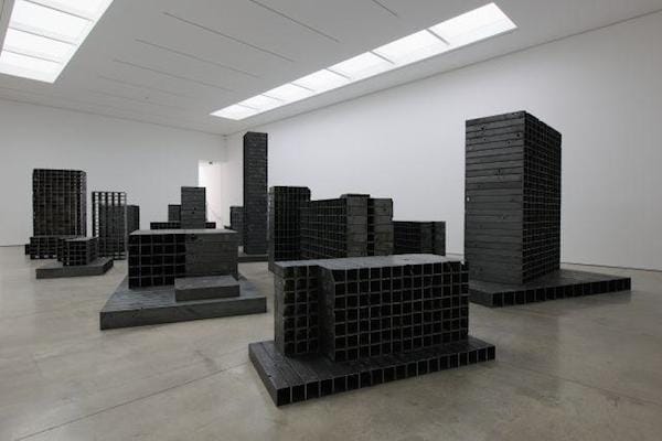 Mona Hatoum’s Bunker shows an apocalyptic cityscape in Beirut. The installation is a series of thirteen blackened structures, pocked with bullet holes, scarred by grenades. The installation’s imposing scale and oppressive and dark atmosphere were extremely confronting as it brought close the physical experience of violence. It was almost as if you could touch the fear of losing one’s life, one’s home, one’s children, the fear of losing everything and everyone, including a place to hide. For her no bunker is a safe space. These works for me were extremely accessible, maybe because of the scale, maybe because of the huge emotional involvement of both artists. They were also reminders of the daily realities of the war in many places around the world, when war is not only a haunting memory but a haunting reality. While some people need to remember, some people cannot even forget.